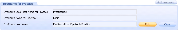 Note: A Practice can only have one Hostname. When the Clear button is clicked and the Hostname information is deleted, the Add Hostname button is once again active.