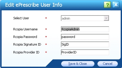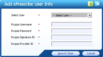 - To close the Add ePrescribe User Info popup and save changes, click the Save & Close button.